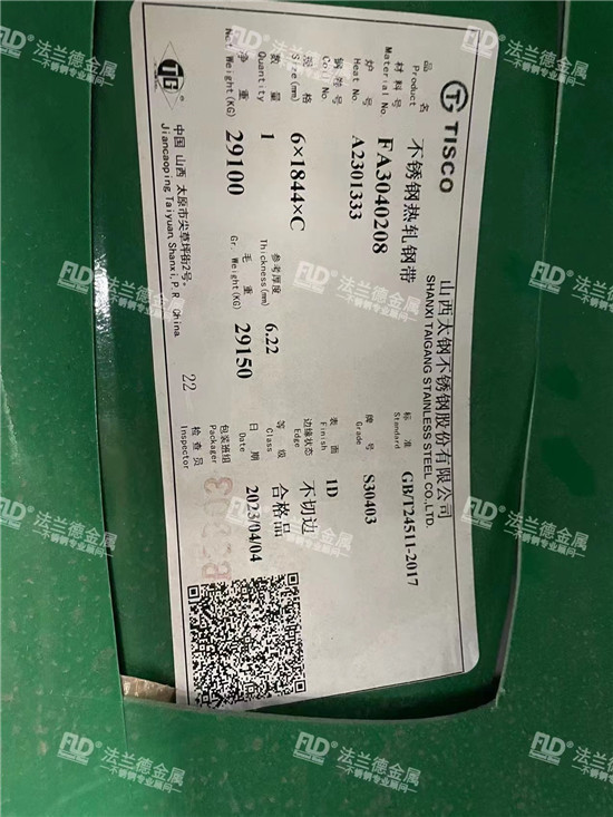 太钢正公差卷板S30403核电项目卷板(6/8/10MM)S30403每批钢板应按 GB/T 4334-2020中C法进行晶间腐蚀试验,
